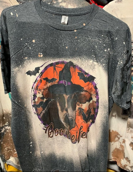 Colorful sublimation ink design on a bleached gildan sunset orange and dark heather tees