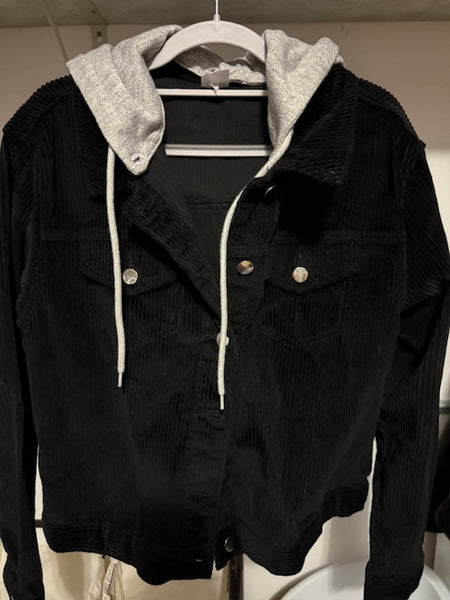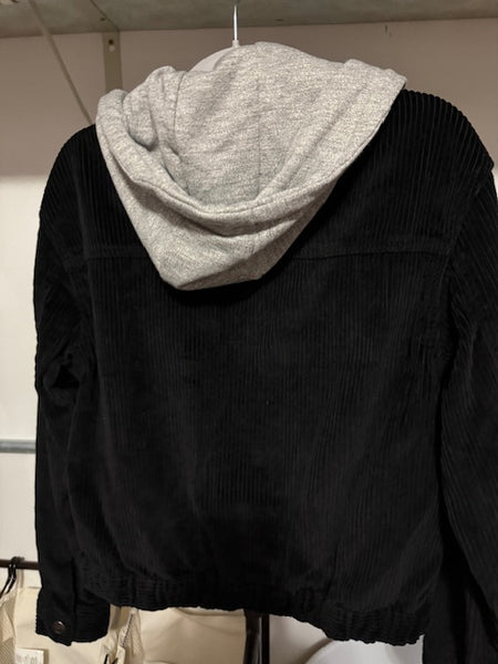 Super soft- cropped corduroy jacket with removable jersey hood. Never Worn. No Boundaries brand Size Large in Juniors