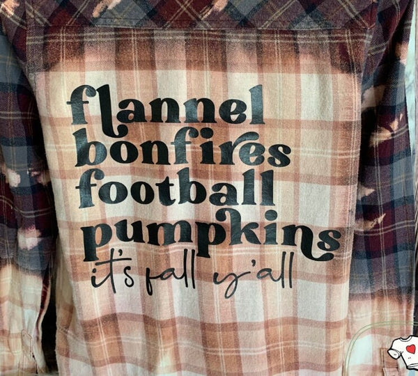 Custom Bleached flannel - Distressed/vintage look. Flannels, Bonfires, Football, Pumpkins, It's Fall Y'all. Gray and maroon Ladies size small. Bajee Collection by BeCool.
