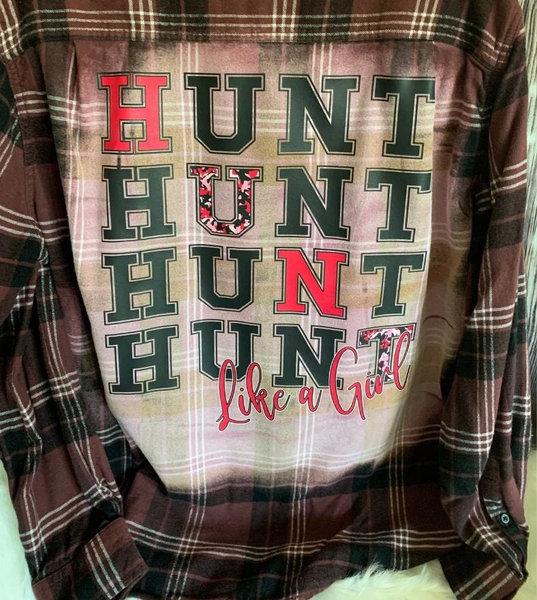 Custom bleached flannel in PLUS size. This is a Men's size 3XL. George brand. Would fit a lady as a loose 3XL or as a 4XL fitted. Colorful dtf transfer pressed.